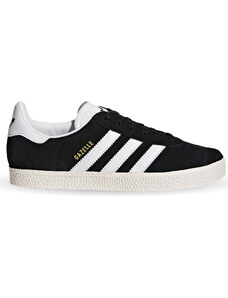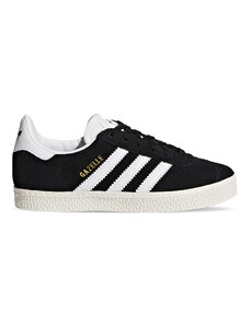 Tenisky Gazelle, ktoré na trávniky vstúpili v 60. rokoch, boli ako stvorené na rýchlu hru. Dnes si bez nich nevieme predstaviť ani streetovú módu. Táto ich detská verzia sa vyznačuje praktickými popruhmi na jednoduché prezúvanie, je vyrobená zo semišu a nad 3 prúžkami ju dotvára zlatistý nápis Gazelle.