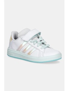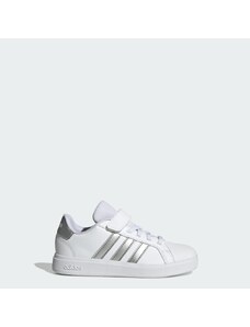 Za domácí úkol jsme si dali zmodernizovat klasické dětské tenisky Grand Court. Povedlo se. Tyto šněrovací boty s hladkým syntetickým svrškem zvládnou i drsnější zacházení, což ocení děti i rodiče. Pružná gumová podešev zpevňuje a chrání nohy. Svršek je vyrobený z řady recyklovaných materiálů a obsahuje nejméně 50 % recyklované příze.