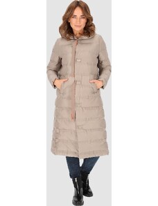 Perso Béžová dámska dlhá páperová prešívaná bunda na zips s kapucňou BLH 253527 FX - beige
