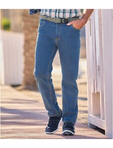 Tieto modré rifle sú veľká klasika a vďaka rovnému strihu „regular“ sa hodia každému typu postavy. Sú vyrobené z mierne pružného denimového plátna (11 oz) pre ešte viac pohodlia. Plochý pás s pútkami so zapínaním na zips a gombík. 5 vreciek: 2 oblé vrecká a vrecko na mince na prednej strane i 2 našité vrecká na zadnej strane. 98 % bavlna, 2 % elastan. Vnútorná dĺžka riflí: cca 86 cm, spodná šírka riflí: cca 22 cm pri veľkosti 50. Perte v práčke pri teplote 30 °C. Farby: modrá