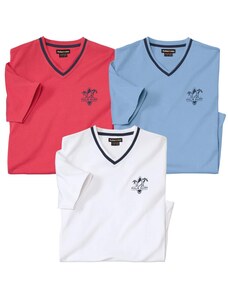 Sada 3 tričiek s výstrihom do V Atlas For Men Ružová