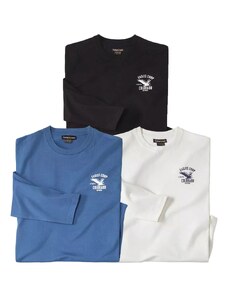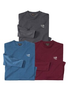 Sada 3 bavlnených tričiek s dlhým rukávom Atlas For Men Modrá