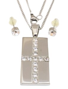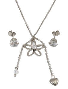 Táto sofistikovaná 2-dielna súprava zahŕňa puzetové náušnice a ladiaci náhrdelník , oba bohato zdobené krištáľovými kvetmi a jemnými lístkami . Ponúka sa v dvoch farebných variantoch – klasickej striebornej pre nadčasovú eleganciu a čiernej pre odvážny a moderný vzhľad . Krištály sa nádherne trblietajú a dodávajú celému setu luxusný nádych .