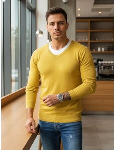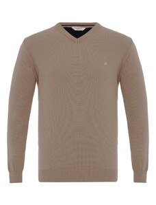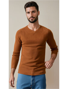 BASIC Hnedý pánsky sveter s decentným výstrihom do V WX2290