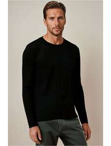 BASIC Čierny pánsky sveter s výstrihom do V WX1883