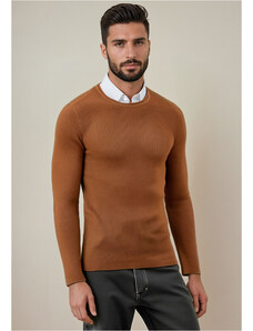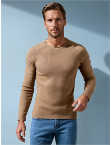 BASIC Svetlohnedý pánsky sveter s jedinečným dizajnom WX2289
