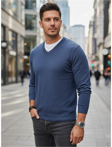 BASIC Modrý pánsky sveter s výstrihom do V WX2317