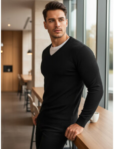 BASIC Pánsky čierny sveter s výstrihom do V WX2203