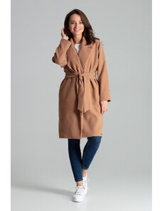 FIGL Elegantný béžový kabát s opaskom M408 Beige