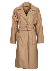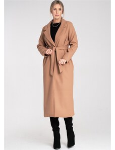 BASIC Svetlohnedý dlhý kabát s pásikom TW-PL-BI-5312-1.31-camel