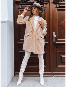BASIC Dlhší béžový kabát Merve s teddy efektom TW-PL-BI-5220.63-beige