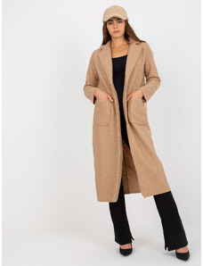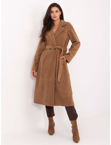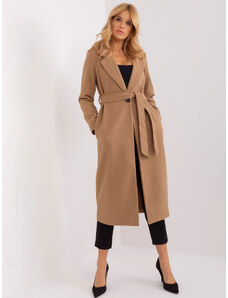 BASIC Hnedý dámsky dlhý kabát s pásikom IT-PL-96765.17P-camel