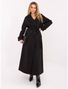 BASIC Čierny dámsky dlhý kabát s pásikom IT-PL-97035.08P-black