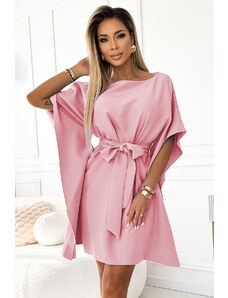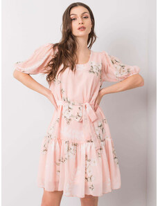 BASIC Svetloružové kvetované šaty s opaskom -LK-SK-507529.67P-light pink