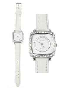 Beangel Dámske hodinky Nicole vykladané kamienkami - biele