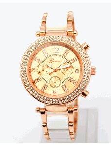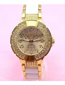 Beangel Dámske vykladané hodinky Geneva - zlaté White