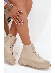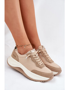 Big Star Shoes Skórzane Sneakersy Trapery Damskie Z Futerkiem Na Platformie Big Star OO274A330 Beżowe