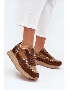 Big Star Shoes Zamszowe Sneakersy Damskie Big Star OO274A313 HI-POLY SYSTEM Brązowe Panterka