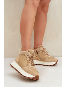 Dámska zateplená športová obuv na platforme SS274105 Beige - Big Star