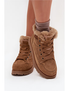 Big Star Shoes Zamszowe Śniegowce Trapery Damskie Na Platformie Z Futerkiem Big Star SS274370 Camel