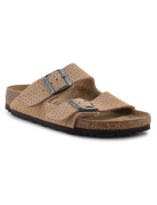 Žabky Birkenstock Arizona BF W 1023960 Vlastnosti: - vybavené špeciálnymi šnúrkami, ktoré sú súčasťou balenia: Žabky Birkenstock Arizona sú akousi klasikou tohto žánru, ktorá si získava srdcia mužov a žien už desaťročia. Tieto jednoduché žabky s dvoma remienkami sú synonymom nadčasového dizajnu a už dlho sa označujú za ikonickú obuv s výnimočným komfortom nosenia. Sofistikovaný vzhľad topánok dotvárajú dokonale farebne zladené pracky. Vrchný materiál je vyrobený z odolného syntetického materiálu Birko-Flor, ktorý je šetrný k pokožke. Materiál: Birko-Flor/semišový vrchný materiál Stielka: korok Podrážka: Eva Farba: farba: medená