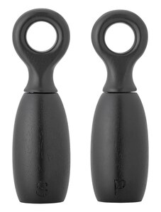 Mlynčeky sú vyrobené z dreva v čiernej farbe a majú veľké okrúhle rukoväte, vďaka ktorým sa s nimi pohodlne manipuluje a ľahko sa otáčajú.