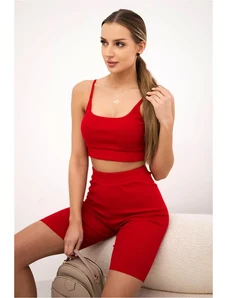 Kesi Complete with red high-waisted trousers