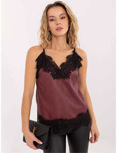 RUE PARIS Vínový dámsky koženkový top s čipkou IT-TP-FL9839.89-bordo