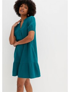 Bonprix Krátke vrúbkované šaty z bavlneného mixu, farba zelená