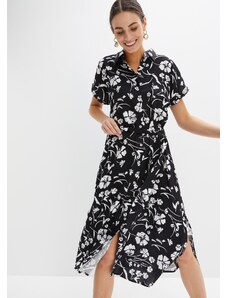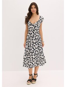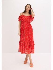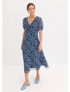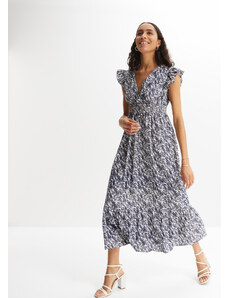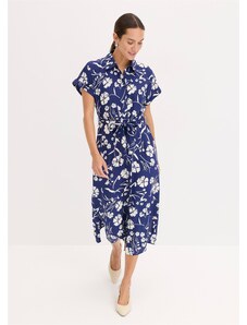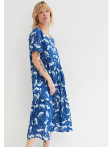 bonprix Midi šaty, Boho, s výstrihom Carmen, z ľahkej bavlny, farba modrá