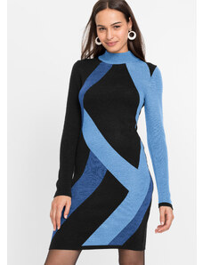 Bonprix Pletené šaty s nórskym vzorom, farba modrá