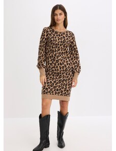 Bonprix Pletené šaty s leopardím vzorom, farba béžová