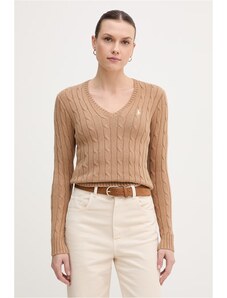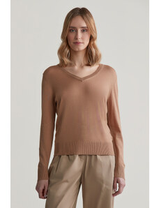 SVETER GANT FINE KNIT V-NECK CARAMEL BEIGE