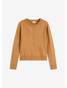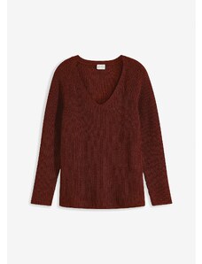 Bonprix Vrúbkovaný pulóver z čistej bavlny, farba hnedá