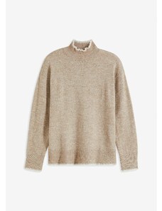 Bonprix Pulóver s blúzkovým prvkom, farba béžová