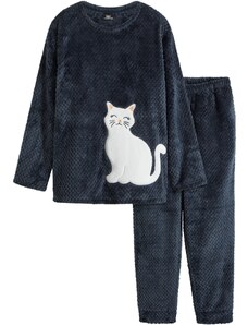 Bonprix Flísové domáce oblečenie so štruktúrovým vzorom a aplikáciou, farba modrá