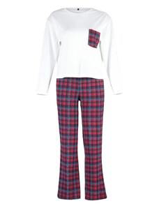 Kockované dámske pyžamá s dlhými nohavicami