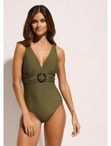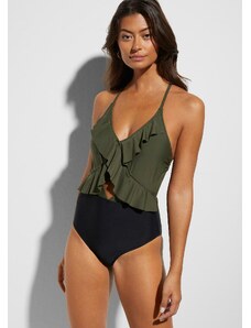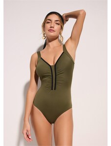 bonprix Štruktúrované plavky s hlbokým výstrihom, farba zelená