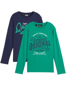 Bonprix Tričko s dlhým rukávom, chlapčenské, z bio bavlny (2 ks v balení), farba modrá
