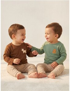 Sinsay - Bavlnené tričká s potlačou 2 pack - hnedozelená