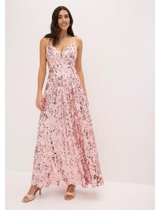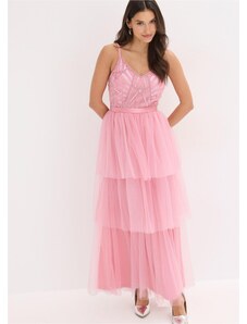 bonprix Večerné šaty z jemného tylu s flitrovanou výšivkou, farba ružová
