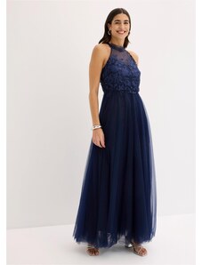 bonprix Večerné šaty z jemného tylu s flitrovanou výšivkou, farba zelená