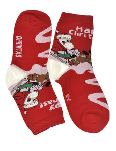 AURA.VIA Detské vianočné bavlnené červené ponožky CoolSanta 28-35