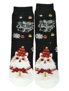 AURA.VIA Detské vianočné bavlnené čierne ponožky SantaGift 28-35