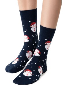 Steven Vianočné dámske ponožky s Mikulášom 136-063 tmavomodré/37, Farba tmavomodrá