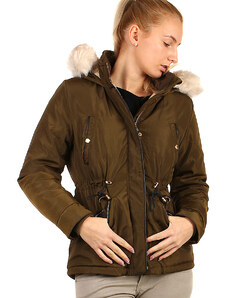 MladaModa Kožušinková bunda s podšívkou model 35996 farba khaki