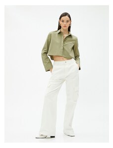 Pruhované džersejové polo tričko s dlhými rukávmi khaki/biela 048 Blancheporte