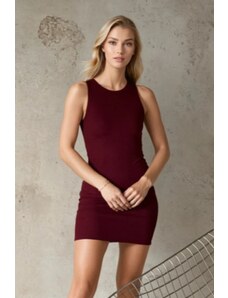 Makover K041 Plášťové šaty s kapucňou na chrbte - bordó