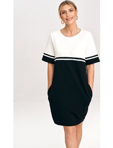 FIGL Čierno-smotanové šaty s krátkym rukávom M1028 Black-ecru