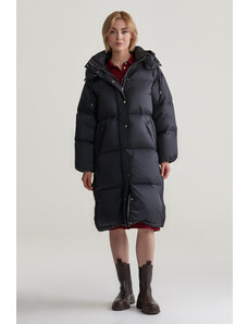 Dámsky kabát od značky Calvin Klein. Farba Čierna. Strih Regular / Normálny. Kapucňa S kapucou. Zapínanie Na zips. Zapínanie Cvoky. Dlhý rukáv. Výstrih Límec. Kapucňa Šnúrka od kapuce. Spodný lem Normálny. Manžeta Elastická. Podrobnosti Potlač na hrudi. Bočné vrecká na cvoky. Manžeta Na cvoky. Podrobnosti Potisk s logem. Modelka meria 175 cm. Modelka má veľkosť S. Sezóna Zima. Kód produktu: LV047D506G UB1. Všetky dostupné veľkosti: XXS, XS, S, M, L. Čierna Calvin Klein Jeans Shine dlhá puffer bunda je tvojím must-have na chladné dni, keď nechceš obetovať štýl ani teplo. Je vyrobená zo 100% nylonu a má 100% polyesterovú podšívku, takže je odolná a pohodlná zároveň. S bežným strihom má celý zips doplnený o patentky, aby ti všetko držalo na mieste. Pevná kapucňa so sťahovacou šnúrkou sa prispôsobí presne podľa teba. Elastické manžety a klasický lem zabránia prefúknutiu, zatiaľ čo bočné vrecká s patentkami pojmú všetky tvoje drobnosti. Diskrétna potlač s logom na hrudi pridáva šmrnc, no stále drží minimalistický čierny look v hre. Či už brázdiš mestské ulice alebo vyrážaš na chill večer, táto puffer bunda kombinuje funkčnosť s modernou estetikou.Materiál Zloženie: 100% NylonMateriál výplne: PolyesterPodšívka: 100% Polyester Pokyny pre starostlivosť: Pranie v práčke 30º, Prať a žehliť naruby, Perte s rovnakou farbou bielizne, Nepoužívajte bielidlo, Nečistť chemicky, Nežehliť, Sušte v sušičke na mierny stupeň, Pranie naruby Podrobnosti Modelka meria: 175 cmModelka má veľkosť: SVrecká: Bočné vrecká na cvokyKapucňa: S kapucou, Šnúrka od kapuceRukáv: Dlhý rukávVýstrih: LímecPodrobnosti: Potlač na hrudi, Potisk s logemStrih: Regular / NormálnyZapínanie: Na zips, CvokySpodný lem: NormálnyManžeta : Elastická, Na cvokyKód produktu: LV047D506G UB1Made in China Veľkostná tabuľka | VEĽKOSŤ | HRUĎ (CM) | |---------|-----------| | XXS | 75-79 | | XS | 79-84 | | S | 84-89 | | M | 89-94 | | L | 94-99 |